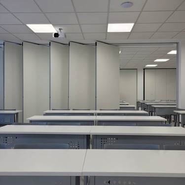 Sistema de división móvil acústico de mayor prestación estructural, diseñado para proyectos que requieren robustez y rendimiento acústico superior